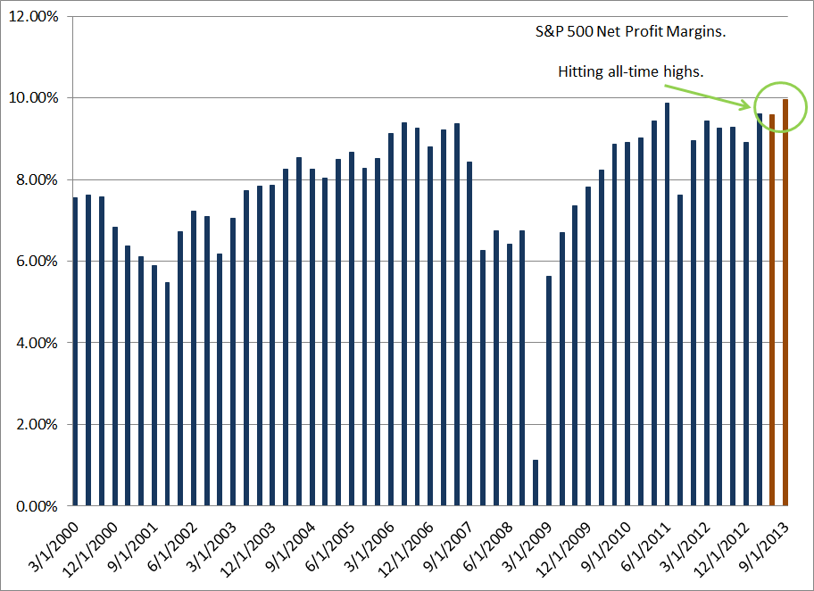 That may be a bit difficult when you look at revenue trends. Year-over-year revenues have been declining over the past few quarters. If fact, given current forecasts, in order for the S&P 500 to hit its earnings mark, net profit margins will need to increase to 10%. Bear in mind this is an extremely high level and one that will be difficult to accomplish.